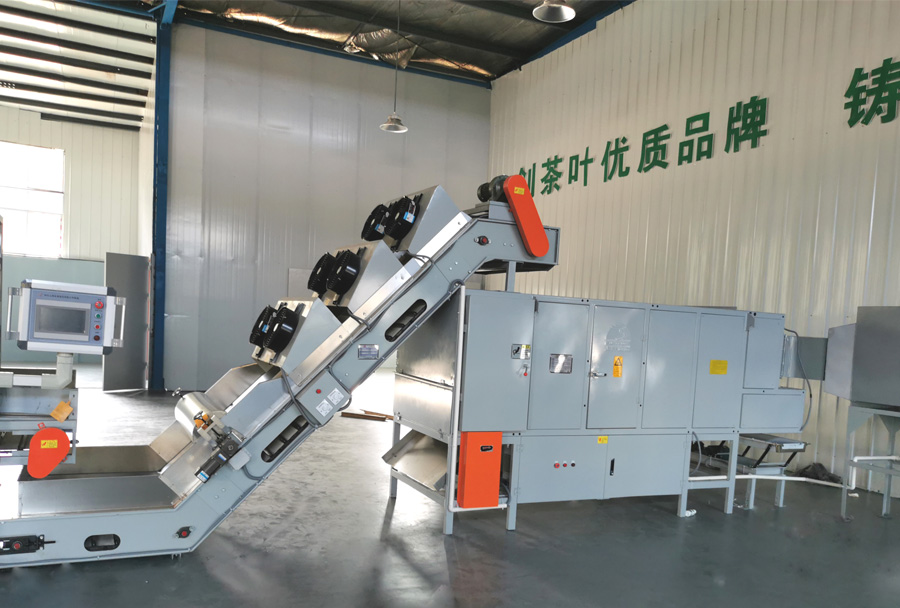 作業(yè)原理:機(jī)組采用搭接式結(jié)構(gòu),上料裝置與烘干箱體獨(dú)立,在防止漏茶的同時(shí)也減輕烘干機(jī)負(fù)載;采用臺(tái)灣輕型鏈條及雙滾輪、雙卷邊翻板,減少漏茶、夾茶 且降低運(yùn)行噪音;等寬輸送使上料厚度更均勻;烘干箱體采用矩形管設(shè)計(jì)及石棉保溫處理,保證了烘箱四周的烘干溫度。